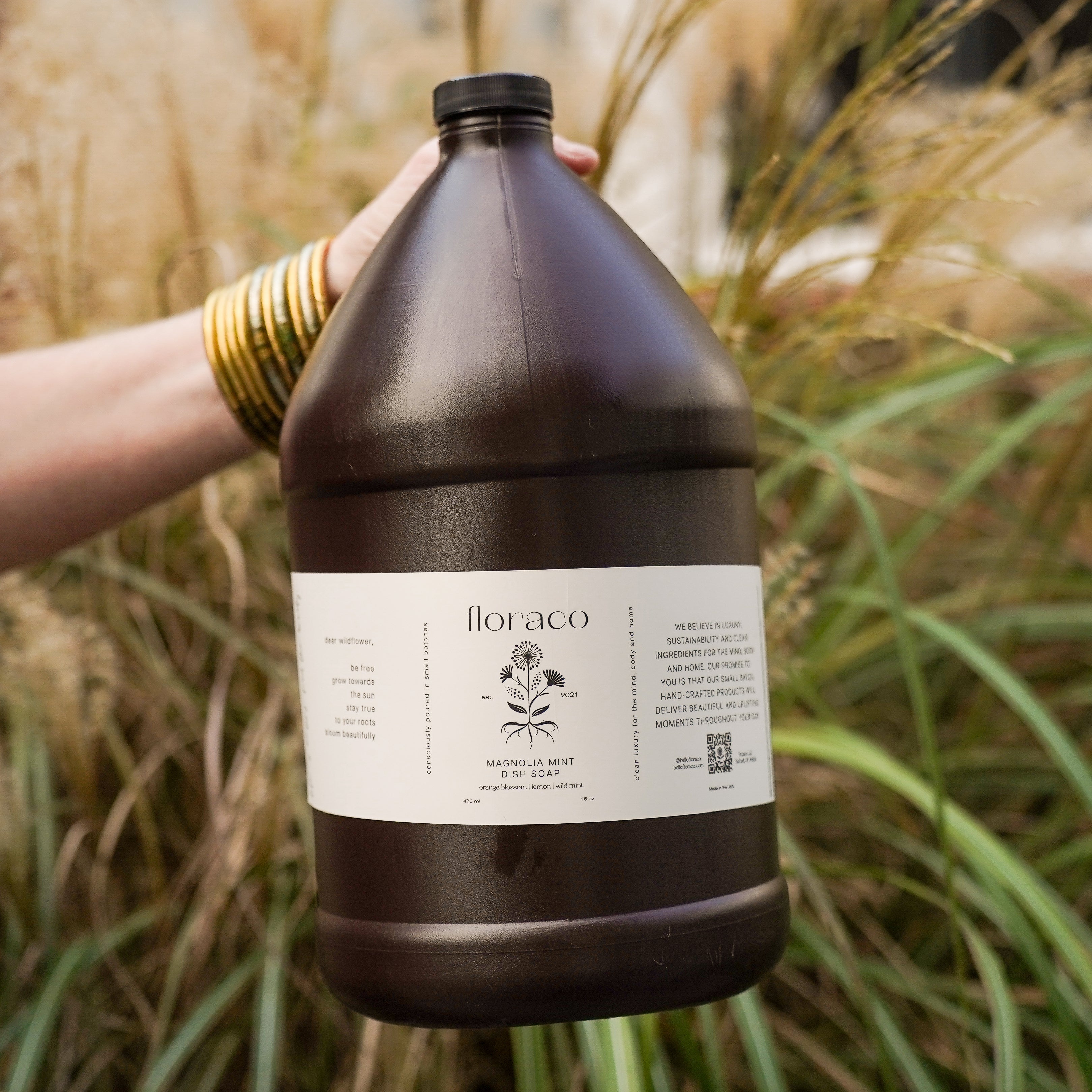 Our Magnolia Mint Dish Soap is formulated with pure vegetable oils to rinse away impurities without stripping your hands of moisture. Your dishes will be squeaky clean and your hands will feel soft, fresh and hydrated, leaving behind the subtle and luxurious scent of garden mint and orange blossom. Experience the difference high quality, responsibly natural, and meticulously hand crafted products can make. Suitable for all skin types. cruelty-free, vegan, sufates, paraben and phthalate free